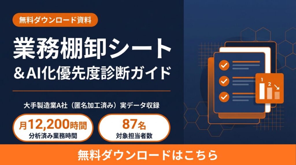 各軸を5段階で評価し、合計スコアが高い業務から優先的にAI化を検討すると、投資対効果の高いプロジェクトを立ち上げやすくなります。