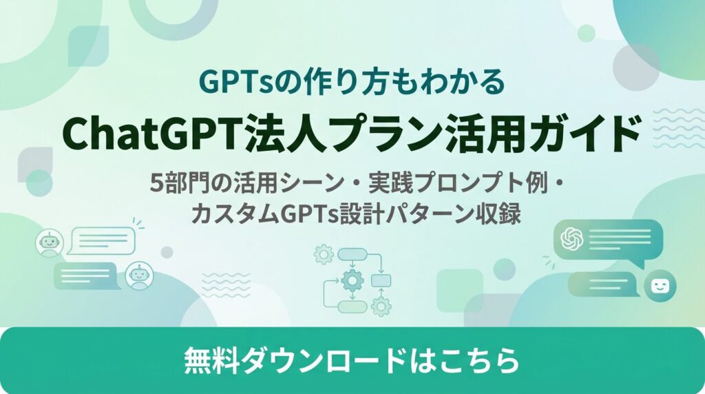 活用シーン・実践プロンプト例・カスタムGPTs設計パターンまで収録した、社内展開にそのまま使える実践ガイドです。