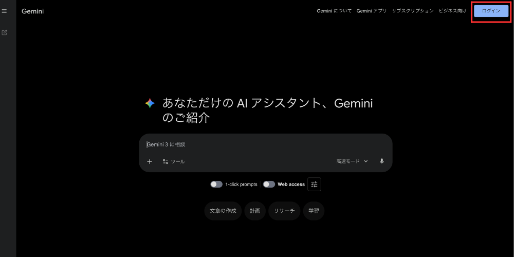 Geminiを利用するには、Googleアカウントを用いたログインが必要です。
