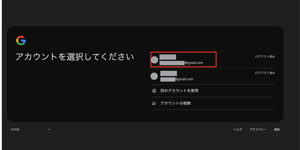 - Googleアカウントに登録してある「メールアドレス」を選択します。