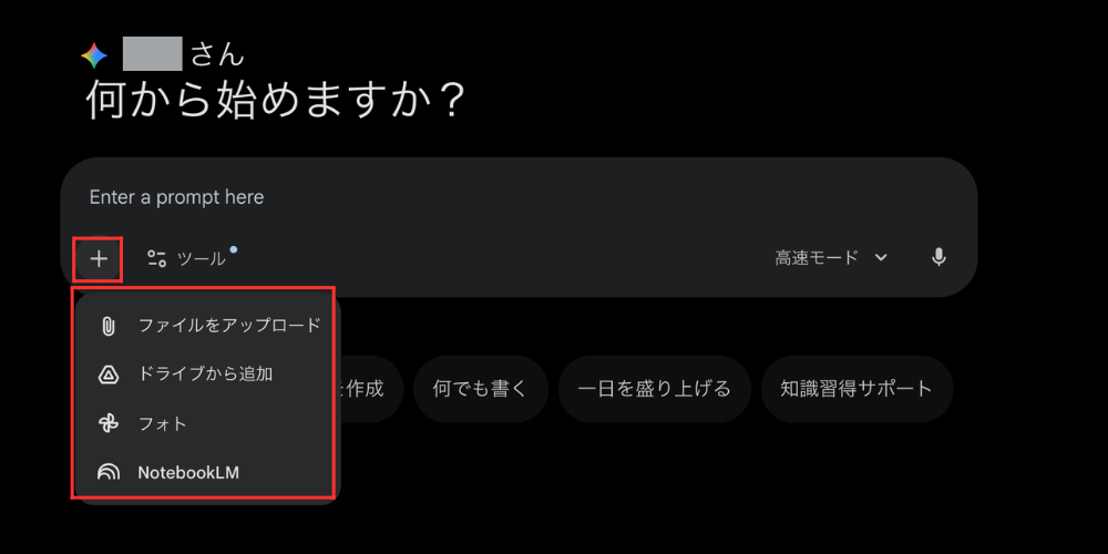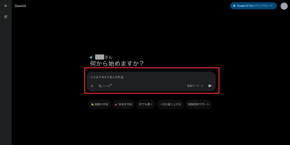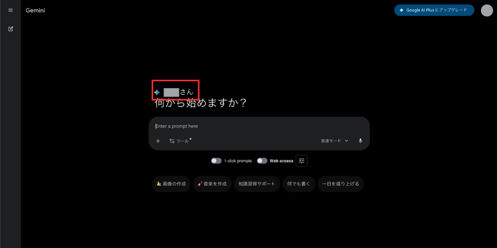 これで、Geminiのメイン画面が表示されたらログイン完了です。